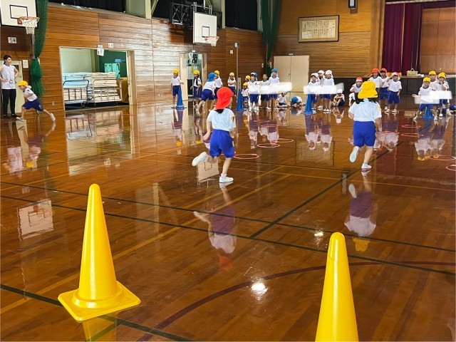 体育科では、折り返しリレーや障害物リレーに挑戦しました。