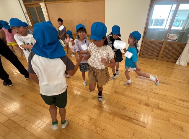 気温の関係で公園には行けませんでしたが、昨日打ち合わせをした遊びを室内で行いました。たくさんの遊びをし、楽しい時間となりました。