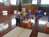 体育科の学習では、スポーツ指導員の方々に来ていただき、跳び箱の学習をしました。手...