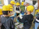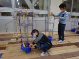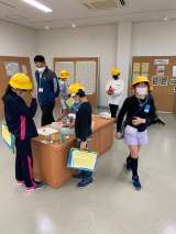 エコタウン交流推進センターで、展示資料や廃材を利用して作られたおもちゃで遊んでい...