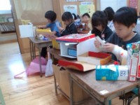 図画工作科の学習では、空き箱やモールを使って、小さなお友達が喜ぶ「ともだちハウ...