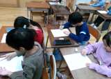 書写の学習では書初大会に向けて練習をしています。「お手本そっくりにかけるように...