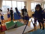 体育科の学習では、跳び箱の練習をしています。いくつかの場をつくり、自分のレベル...