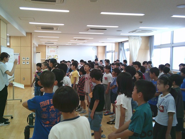 2学期に行われる音楽会に向けて、学年で練習が始まっています。子供たちは、歌詞からイメージできることを伝え合い、情景を思い浮かべながら歌いました。夏休みもたくさん練習して上手になりたいと願う子供たちでした。