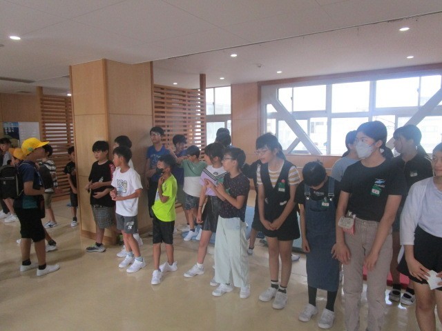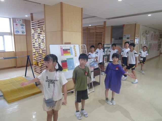 ひまわり委員会の人たちと一緒に玄関前に立ち、あいさつ運動をがんばっています。