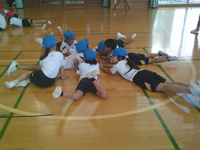 2学期の体育が始まりました。各団になり、わかめやクラゲなどになりきって身体全体を動かしました。