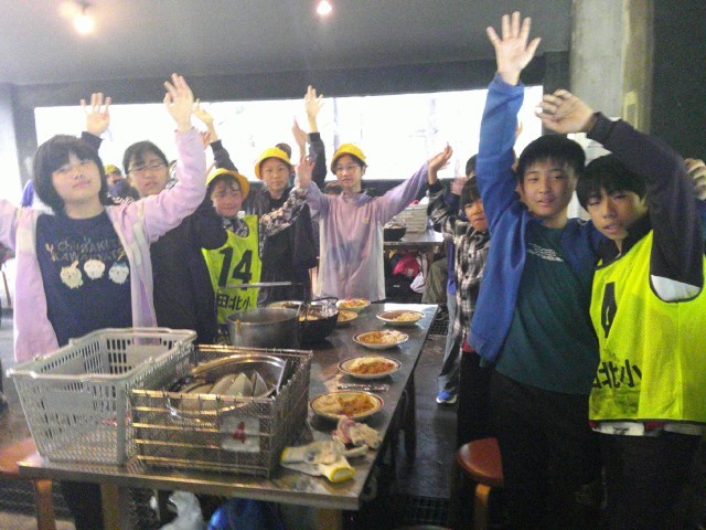 野外炊事開始時刻が遅れていたものの、調理時間を短縮した子供たちは、12時過ぎから、次々にカレーライスを完成させました。