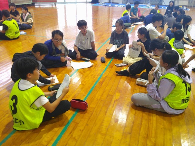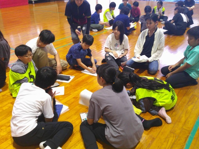 夕べの集いでは、今日を振り返って、「できたこと」と、「この後つけたい力」について、班ごとに話し合いました。