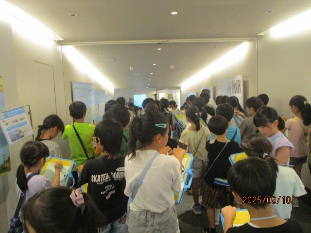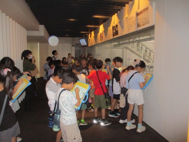 最初の見学先では、ますのすしが出来上がるまでの工程を実際に見ました。大きな機械を使って流れ作業で作られているところを見て、真剣にメモを取ったり、工場の方から貴重なお話を聞いたりしました。質問コーナーでは、子供たちの中からたくさんの感想や疑問が生まれ、より詳しく教わりました。多くのことを知った実りある学習でした。