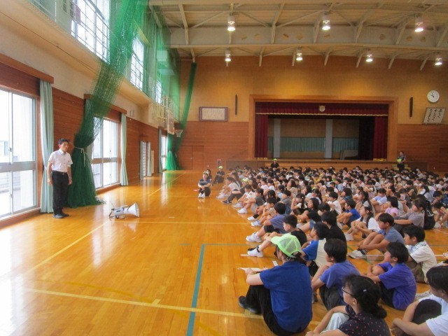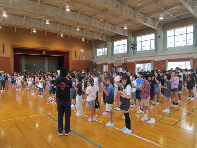 全校の子供たちは、奥田北小学校に対し、大きな声で「お誕生日おめでとう」と言い、拍手をしてお祝いしました。