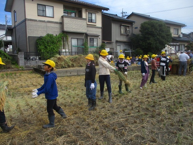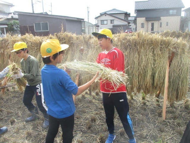 今日は、先週の稲刈り体験の続きで、脱穀体験をさせていただきました。
