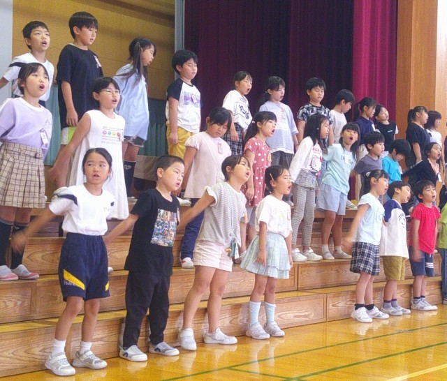 音楽会の練習では、子供たちは、真剣に楽しみながら取り組んでいます。今日は、自分たちが歌っている様子を映像を見て振り返り、もっとよい音楽会にするためにはどうしたらよいのかを話し合いました。最高の音楽会にしようと一生懸命な子供たちです。