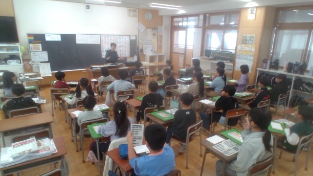 10/27の3限目に点字講座を行いました。始めに子供たちは、点字の歴史や点字の規則性の説明をきちんと聞いていました。説明の後に、子供たちは点字で「あ・い・う・え・お」や自分の名前を書きました。