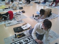 目の不自由な方への理解を深めるために、講師の先生をお呼びして点字体験講座を行いました。点字を見たことはあるけれど、実際に打つことは初めての子供がほとんどでした。自分の名前を書きました。