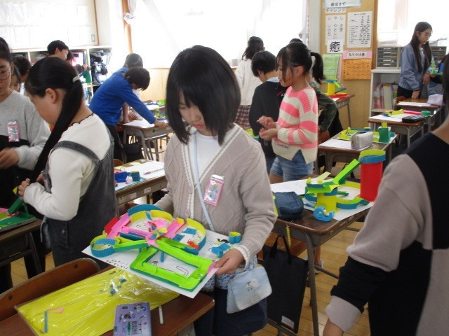 友達の「おすすめポイント」や「ルール」を読みながらビー玉を転がし、「ゴールまで行ったよ」「もう一回してみていい?」などと、話しながら取り組みました。