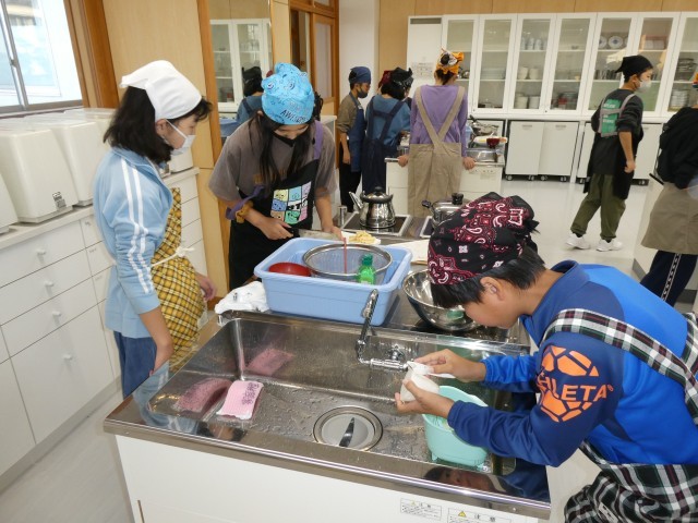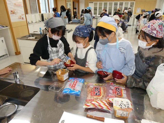 班の仲間と協力しながら、手際よくおいしいみそ汁をつくり上げていました。