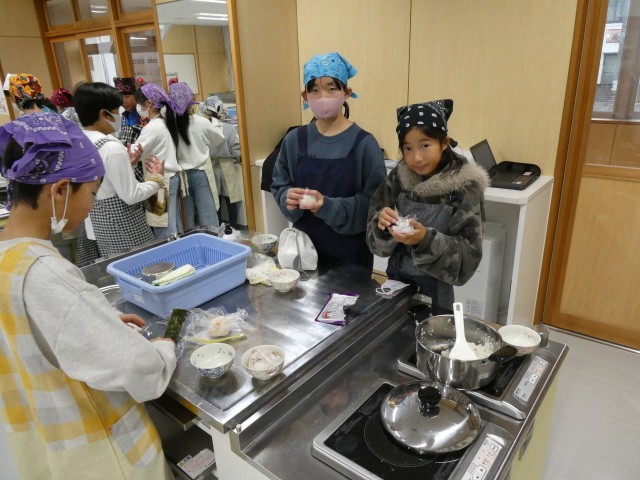 子供たちは、上手にできるかドキドキの様子でしたが、どの班もおいしいおにぎりをつくっていました。