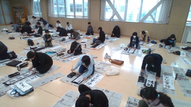 「新春の志」を書きました。止め・はらい・はねに気を付けて書いています。