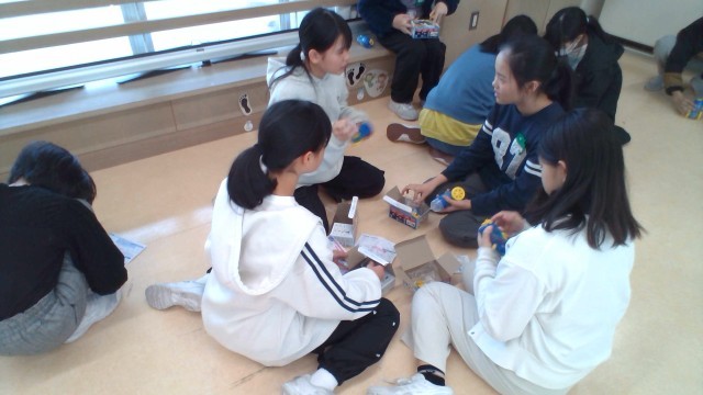 電気をつくったり、ためたりして、電気車を作りました。うまく、走らせることができました。