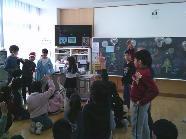 楽しみにしていた2学期のお楽しみ会&クリスマス会をしました。鬼ごっこやダンス、クイズをして楽しみました。仲良く過ごすことができました。