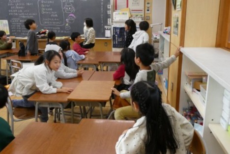 子どもたちは、冬休みを楽しみを話しながら、真剣に話を聞く様子がみられました。