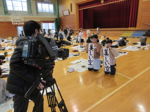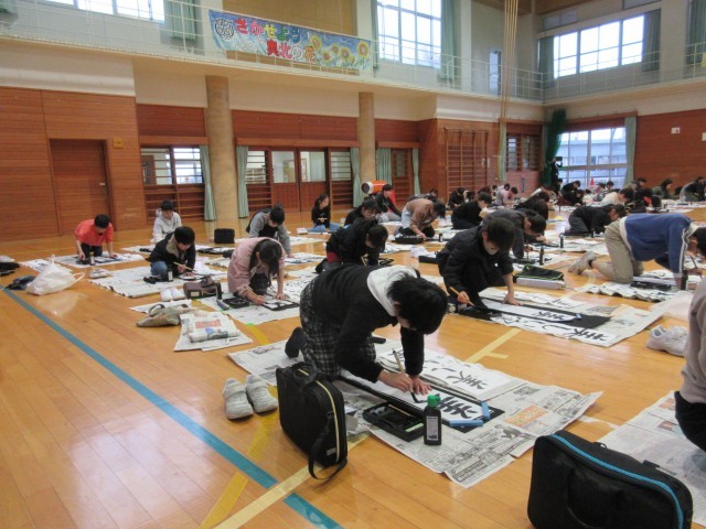 9時25分から体育館で書初大会を行いました。