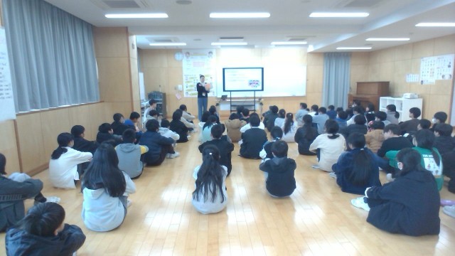 3学期の大きな流れを確認したり、卒業に向けて見通しをもったりできるように学年集会を行いました。