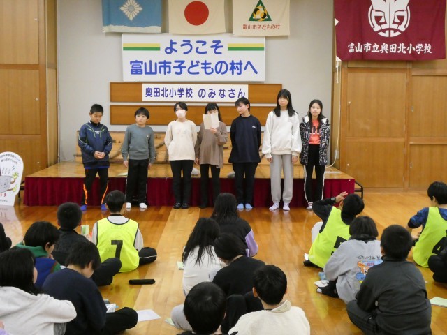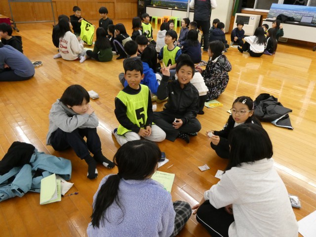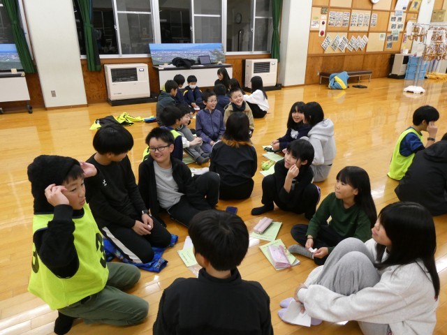 宿泊学習の夜の活動は、学年集会です。 副班長と活動係が、企画・運営しました。