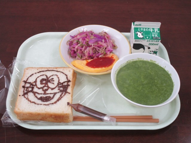 学校給食週間「学びをパクリ!おいしい教科書」も、今日が最終日。図画工作科のカラフル献立でした。