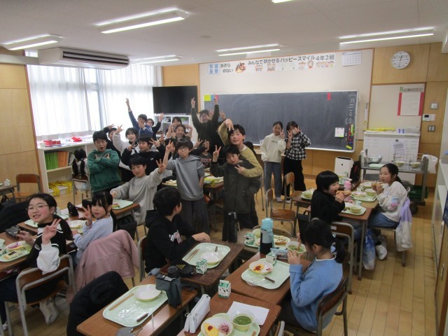 写真は、4年教室の様子です。元気いっぱいです。