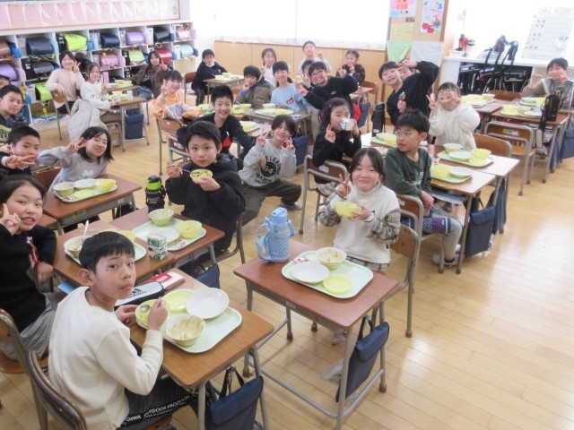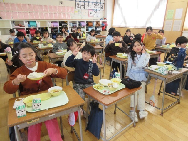 今日の給食は、「節分献立」でした。節分豆が添えられました。