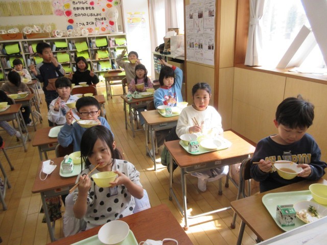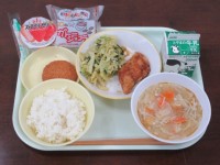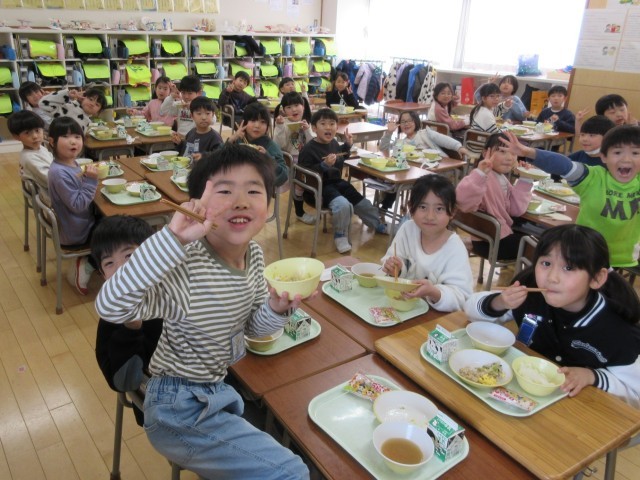 今日の給食は、「ひなまつり献立」でした。少し早く「ひなまつり」の気分を味わいました。
