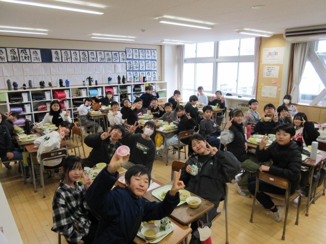 献立について尋ねると、「赤飯がもちもちしておいしい」「かつがおいしい」「全部おいしい」などの返答がありました。