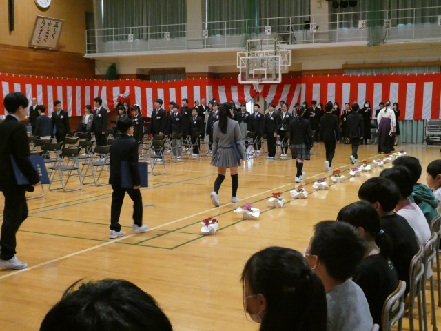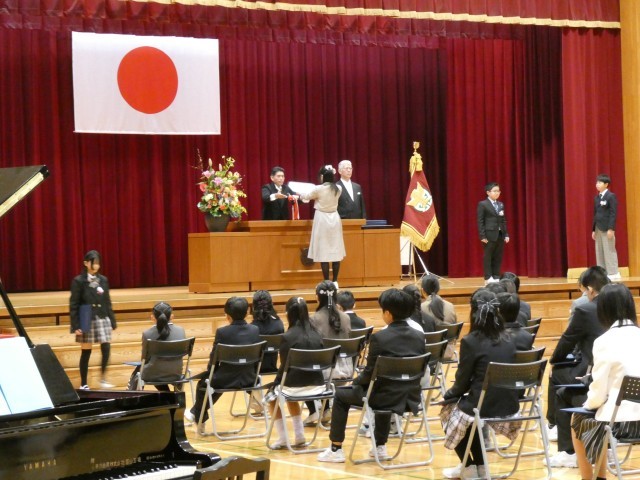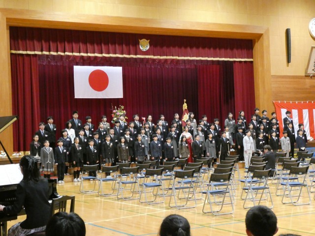 凜とした表情で式に臨む6年生はとても素敵でした。在校生は、6年生に感謝の気持ちを表しました。