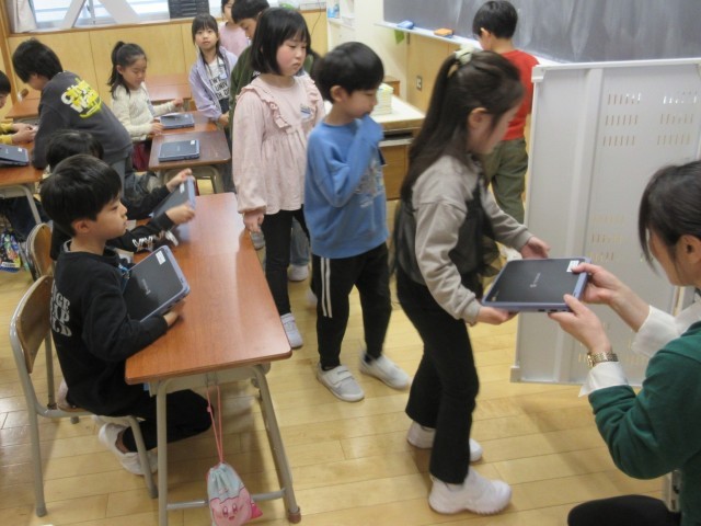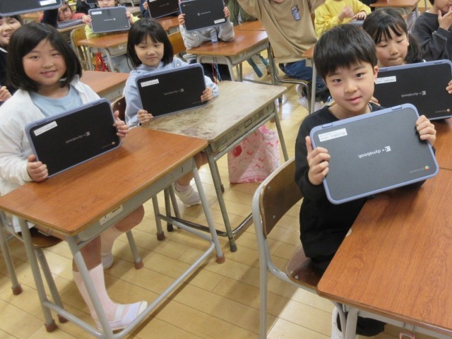 クロムブックの使い方を学んでから、配付しました。新品なので大喜びです。きまりを守って、楽しく使いましょうね。