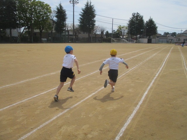 腕の振り方を意識して昨日の自分に負けないように、どの子も一生懸命走っていました。