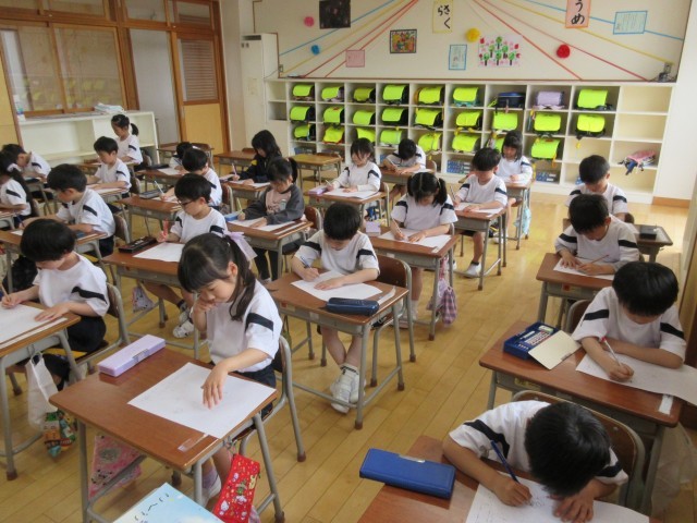 子供たちは、鉛筆の持ち方や、書くときの姿勢にも気を付けながら、集中して取り組んでいます。