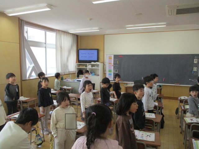 音楽科の学習では、校歌の練習をしています。歌詞を覚えて一生懸命歌っています。