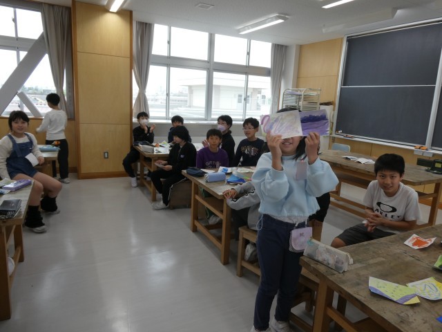前回、思いのままに描いたカードをグループの友達と見合いました。