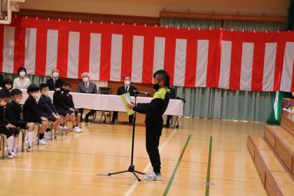 6年生が代表の言葉を述べました。前向きに練習に取り組んだ成果が、しっかりと出せました!