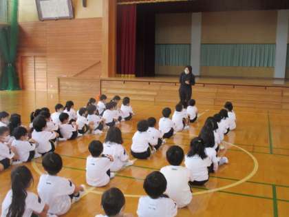 1組と2組の合同で取り組みました。 「あつまりっこ」や「かけっこ」の練習をしました。