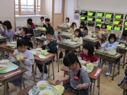 初めての給食にもかかわらず、準備をスムーズに行いました。