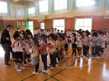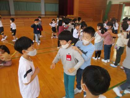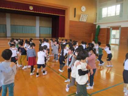 生活科の学習では、1,2組合同で体育館で活動しました。