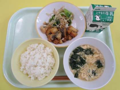 ・ごはん ・牛乳 ・魚と豆のえごまみそからめ ・おひたし ・かきたま汁