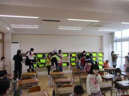 昼休みになると、3年生や6年生が遊びに来てくれます・・・
