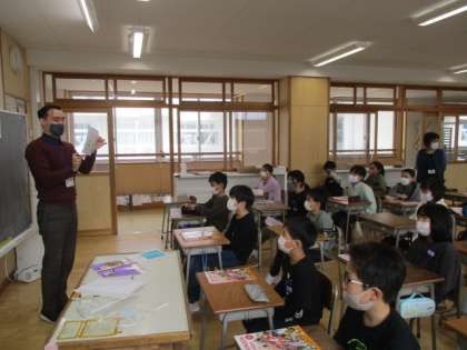 今日は、ALTのジェームズ先生と初めての外国語に取り組みました。