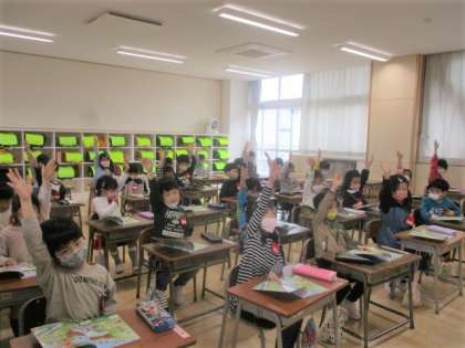 挙手をして発表をしたり、音読をしたり、一生懸命に学習に取り組みます。