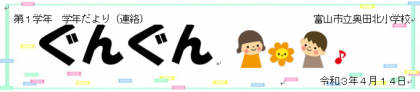 入学のしおり内の「入学当初の学習予定」には、14日までの予定が載っていましたが、その後の時間割等についてもホームページ内に「ぐんぐん」をアップしますので、そちらをご覧ください。