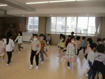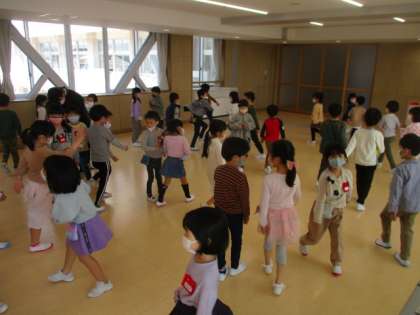 音楽科の学習では、「さんぽ」の曲に合わせて歩きました。