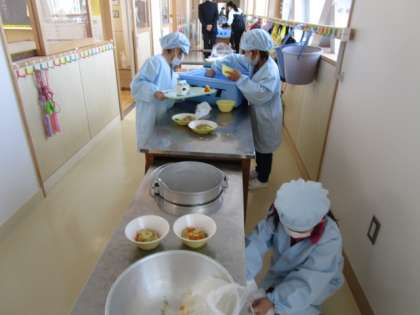 給食準備(2年生)